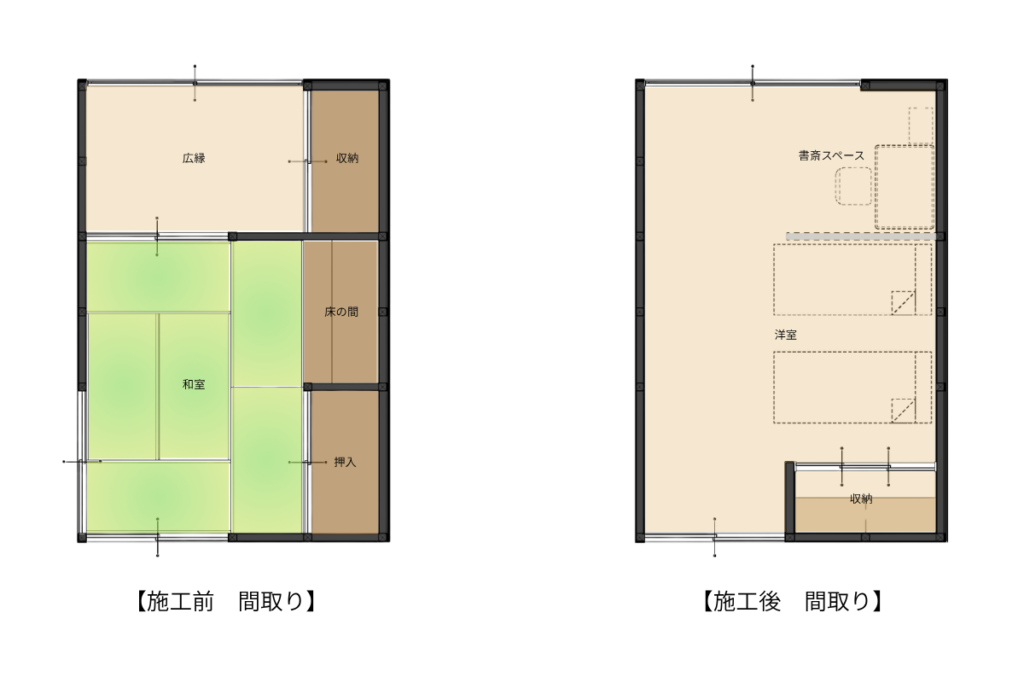 物置状態だった和室を、寝室と書斎スペースへリフォーム(防府市)